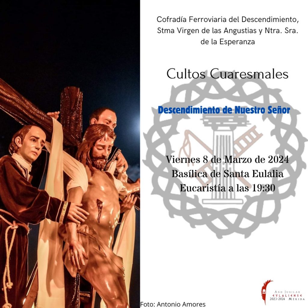 Este próximo viernes 8 de marzo a las 19:30 en la Basílica de Santa Eulalia celebraremos el culto a Nuestro Señor del Descendimiento